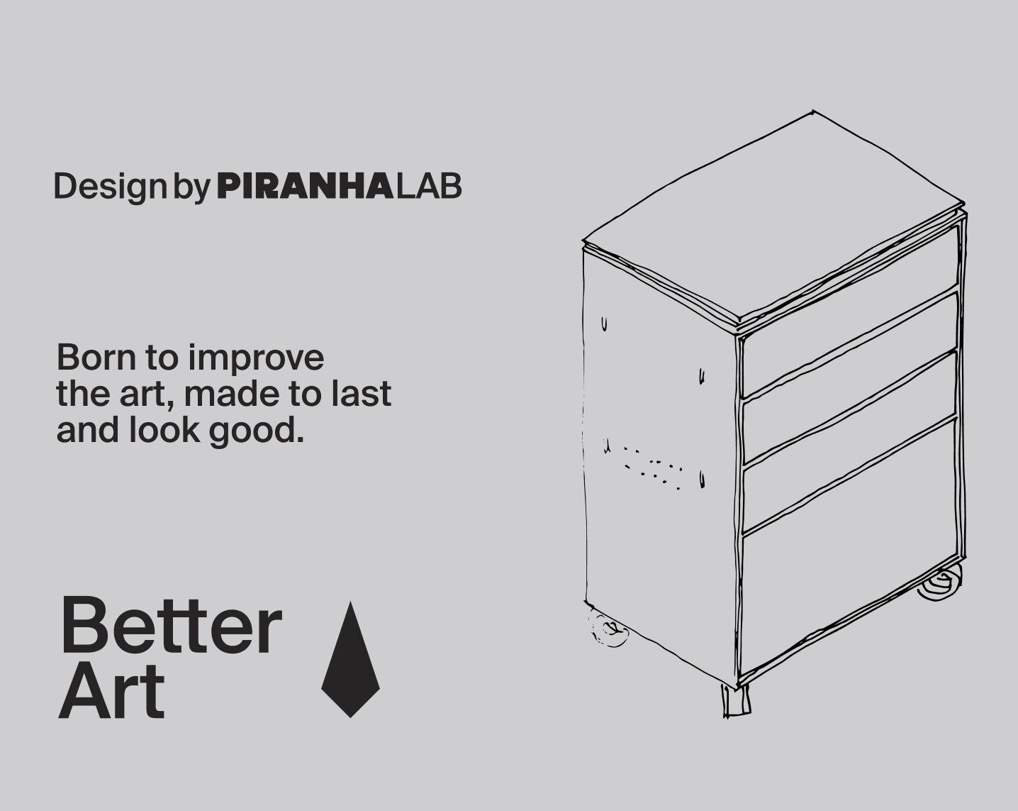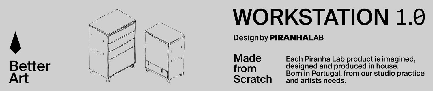 Piranha Workstation 1.0, engineered by Piranha LAB. Compact raw steel body, 316L stainless steel top, silent drawers and modular upgrade system. Designed from real studio practice to improve workflow, organization and performance.